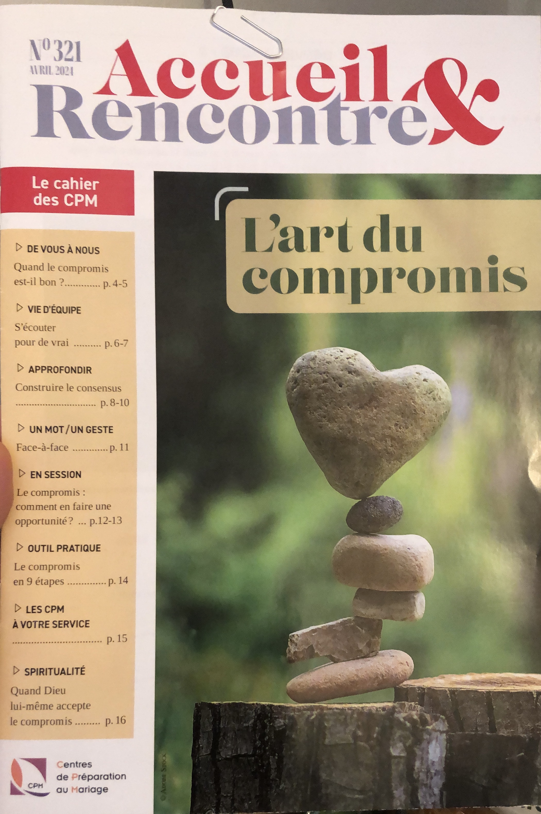 J’ai eu le plaisir d’écrire un article sur le thème du compromis dans la revue « Accueil et Rencontre » du mois d’avril 2024. Cette revue est destinée aux animateurs qui proposent les sessions de préparation au mariage. J’ai été enchanté de cette expérience et espère qu’il sera un support intéressant pour nourrir la réflexion autant pour les animateurs qu’aux futurs mariés 🙂